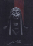 2017Een orakel uit de oudheid. Kleurpotlood op zwart tekenpapier. Afbeelding: goeddeels zelfbedacht; ten dele naar een portretfoto.