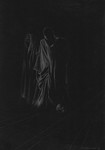 2017Kleurpotlood op zwart tekenpapier. De paradox van stoffen die verhullen en maskers die niets verhullen. Afbeelding: naar enkele foto's.